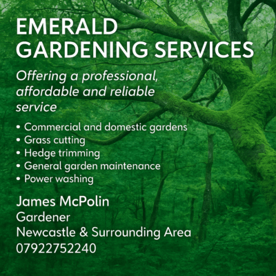 Emerald Gardening Services offers professional, reliable, and friendly garden care for both commercial and domestic customers across Ballymartin, Newcastle, and the wider Newry & Mourne area. With a strong reputation for quality, Emerald Gardening Services provides all aspects of garden maintenance, including grass cutting, hedge trimming, power washing, and general garden upkeep.